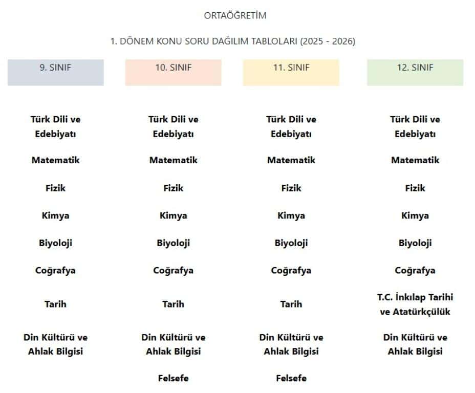 1. DÖNEM YAZILI SINAVLARI KONU SORU DAĞILIM TABLOLARI İÇİN AŞAĞIDAKİ BAĞLANTIYA TIKLAYINIZ.